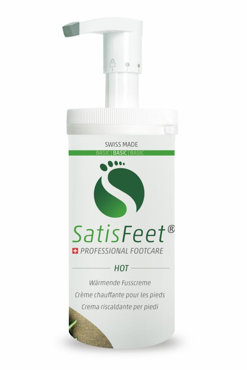 Varmende fotkrem som absorberer lett. SatisFeet Hot får i gang sirkulasjonen ved stimulering av nerve sensorer. Forebygger trette og verkende føtter, takket være en valgt kombinasjon av rosmarin og lavendel olje. Huden blir hydrert uten å føles klissete. Passer ikke for diabetikere grunnet stimulering av nerve sensorer.